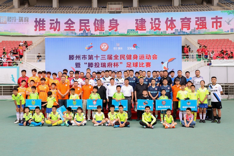 6月4日,滕州市第十三屆全民健身運(yùn)動會暨“滕投·瑞府杯”足球比賽在市體育中心體育場隆重舉行。本次比賽由滕州市體育事業(yè)發(fā)展中心、滕州市體育總會主辦,滕州市足球運(yùn)動協(xié)會承辦,山東滕建投資集團(tuán)有限公司等單位協(xié)辦。滕州市體育事業(yè)發(fā)展中心黨組書記、主任丁濤,滕州市體育事業(yè)發(fā)展中心黨組成員、副主任、滕州市體育總會